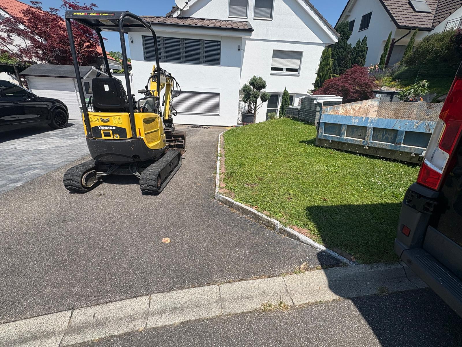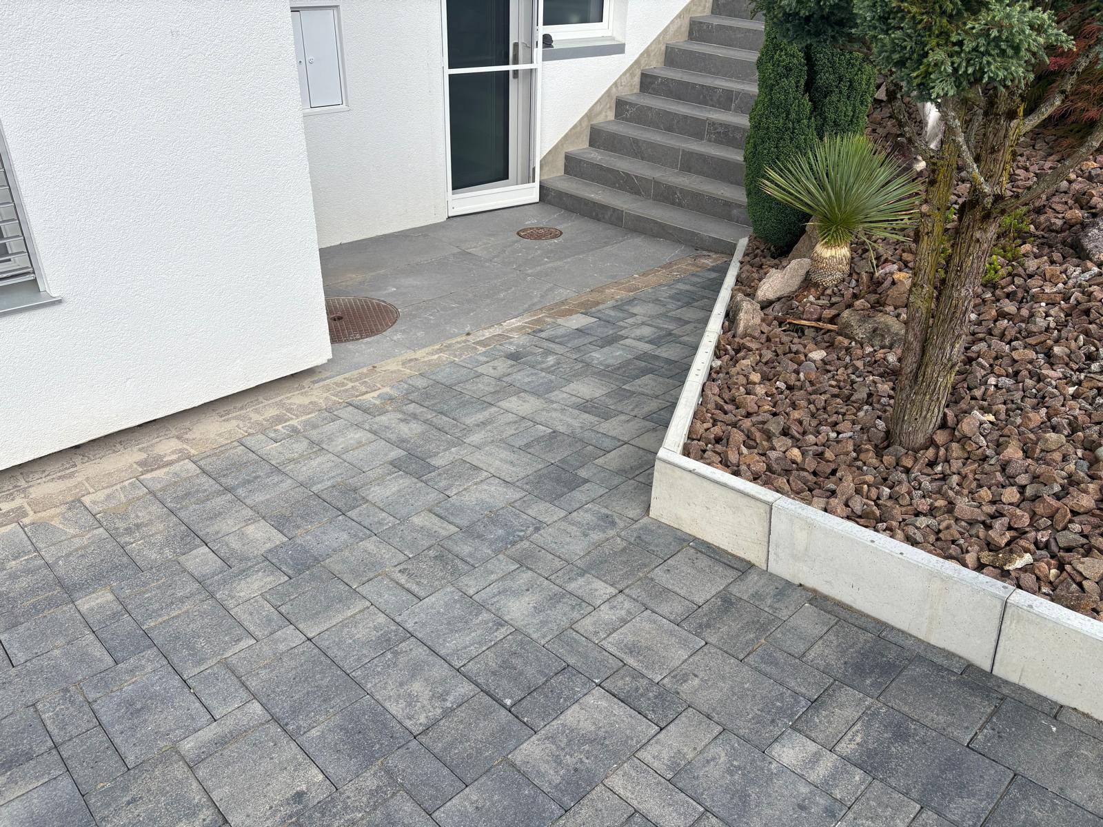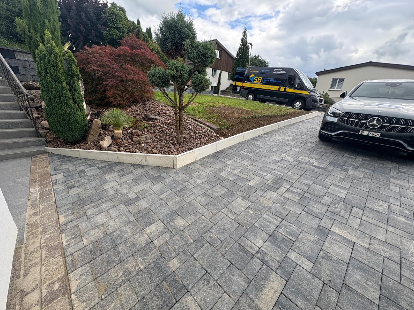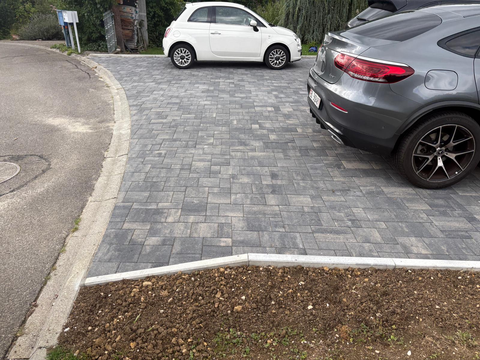 Für die Familie Catello durften wir in Hölstein die komplette Hauseinfahrt sowie den Parkplatz neu gestalten. Der bestehende Belag wurde entfernt und der Untergrund fachgerecht ausgehoben. Nach der Entsorgung des alten Materials entstand eine neue Fundationsschicht, die den Aufbau langfristig stabil trägt. Auf insgesamt 120 Quadratmetern wurden neue Verbundsteine verlegt. Dazu kamen fünfzehn Meter Stellplatten und verschiedene Anpassungsarbeiten, damit die gesamte Fläche sauber anschliesst und ein harmonisches Gesamtbild entsteht. Das Resultat ist eine moderne und funktionale Einfahrt, die optisch überzeugt und den Alltag der Familie spürbar erleichtert.